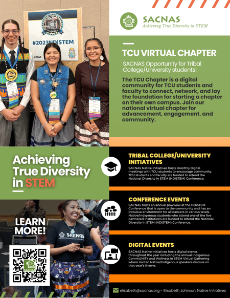 At SACNAS we know that to contribute to our scientific community, we must embrace our whole selves. The SACNAS Native community honors our cultures, our peoples, and our shared futures.